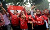Mayarakat turut mengikuti kirab juara kontingen Sea Games 2023 di Depan Gedung Kemenpora, Senayan, Jakarta, Jumat (19/5/2023). Ke (FOTO : Republika/Prayogi)