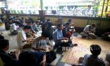Jamaah Shalat Jumat menyantap bersama makanan nasi Jumat berkah di Masjid Al Ikhlas Patukan, Gamping, Sleman, Yogyakarta, Jumat (19/5/2023). (FOTO : Republika/Wihdan Hidayat)