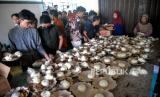 Uniknya tradisi yang sudah berjalan selama sembilan tahunan ini disiapkan dalam piring. Sehingga jamaah menyantap makanan secara bersama-sama.
