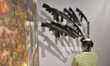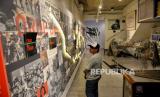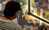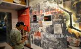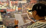 Pengunjung mengamati karya yang di pamerkan dalam pameran 25 TAHUN REFORMAS!H IN ABSENTIA di Yayasan Riset Visual mataWaktu di Jakarta, Jumat (19/5/2023). Pameran tersebut menampilkan karya fotografi, grafis, seni Instalasi dan karikatur tentang gerakan reformasi tahun 1998 sebagai upaya merefleksikan seperempat abad gerakan reformasi yang berlangsung hingga 17 Juni mendatang. (FOTO : Republika/Thoudy Badai)