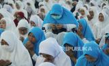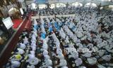 REPUBLIKA.CO.ID, BANDUNG -- Calon Jamaah Haji (Calhaj) Kota Bandung tahun 2023 mengikuti bimbingan, di Masjid Pusdai, Kota Bandung, Sabtu (20/5/2023).