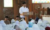 Pelaksana Harian (Plh) Wali Kota Bandung Ema Sumarna menyampaikan sambutan saat pelepasan secara simbolis calon jamaah haji (Calhaj) Kota Bandung tahun 2023, usai acara bimbingan calhaj, di Masjid Pusdai, Kota Bandung, Sabtu (20/5/2023). (FOTO : Edi Yusuf/Republika)