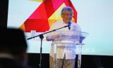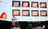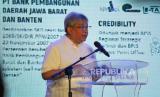 Dirut Bank BJB Yuddy Renaldi menyampaikan sambutan saat peringatan HUT Bank BJB ke-62 di halaman kantor pusat Bank BJB Jalan Naripan, Kota Bandung, Sabtu (20/5/2023). (FOTO : Edi Yusuf/Republika)