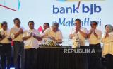 REPUBLIKA.CO.ID, BANDUNG -- Dirut Bank BJB Yuddy Renaldi melakukan pemotongan tumpeng saat peringatan HUT Bank BJB ke-62 di halaman kantor pusat Bank BJB Jalan Naripan, Kota Bandung, Sabtu (20/5/2023).