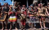 Sejumlah warga Suku Dayak mengikuti acara pembukaan Pekan Gawai Dayak (PGD) ke-37 di Rumah Radakng, Pontianak, Kalimantan Barat, Sabtu (20/5/2023). PGD ke-37 Kalimantan Barat tersebut digelar untuk melestarikan seni budaya Suku Dayak dan memberikan edukasi kepada generasi muda. (FOTO : ANTARA FOTO/JESSICA HELENA WUYSANG)