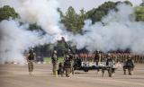 Sejumlah prajurit TNI menembakkan meriam saat membuka upacara serah terima jabatan Komandan Korps Marinir (Dankormar) TNI Angkatan Laut di Lapangan Upacara Brigif 1 Marinir Kesatrian Marinir Hartono, Jakarta, Ahad (21/5/2023). Mayor Jenderal TNI Marinir Nur Alamsyah resmi menjabat sebagai Komandan Korps Marinir (Dankormar) TNI Angkatan Laut menggantikan Mayor Jenderal TNI Marinir Widodo Dwi Purwanto yang memasuki purna tugas. (FOTO : Antara/Asprilla Dwi Adha )