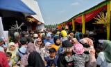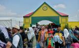 Warga berkumpul saat mengunjungi acara Lebaran Betawi 1444 Hijriah di Lingkar Selatan Monumen Nasional (Monas), Jakarta, Ahad (21/5/2023). Pemerintah Provinsi DKI Jakarta kembali menggelar acara Lebaran Betawi setelah vakum selama 3 tahun akibat pandemi Covid-19. Lebaran Betawi kali ini mengusung tema Betawi Kompak, Jakarta Sukses, Indonesia Maju yang diisi dengan beragama kegiatan kesenian Betawi. Kegiatan tersebut berlangsung selama dua hari, dari tanggal 20-21 Mei 2023. (FOTO : Republika/Thoudy Badai)