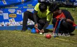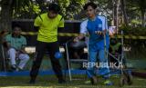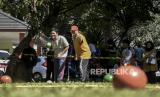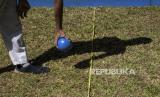 Wasit mengukur jarak bola pada Festival Olahraga Bola Bocce di SLB-D YPAC Bandung, Jalan Mustang, Kota Bandung, Jawa Barat, Senin (22/5/2023).  (FOTO : ABDAN SYAKURA/REPUBLIKA)