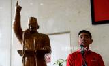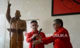 REPUBLIKA.CO.ID, JAKARTA. -- Sekjen PDI Perjuangan Hasto Kristiyanto didampingi Ketua DPP bidang Kehormatan Komarudin Watubun dan Wali Kota Solo Gibran Rakabuming Raka memberi keterangan pers seusai pertemuan di kantor DPP PDI Perjuangan, Jakarta, Senin (22/5/2023).