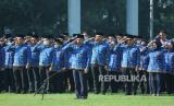 Aparatur Sipil Negara (ASN) sekretariat daerah (setda) Pemprov Jawa Barat mengikuti upacara memperingati Hari Kebangkitan Nasional (Harkitnas) ke-115 Tingkat Jawa Barat, di Lapangan Gasibu, Kota Bandung, Senin (22/05). (FOTO : Edi Yusuf/Republika)