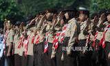 Para pelajar mengikuti upacara memperingati Hari Kebangkitan Nasional (Harkitnas) ke-115 Tingkat Jawa Barat, di Lapangan Gasibu, Kota Bandung, Senin (22/05). (FOTO : Edi Yusuf/Republika)