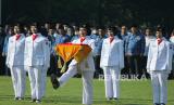Pengibaran bendera merah putih saat upacara memperingati Hari Kebangkitan Nasional (Harkitnas) ke-115 Tingkat Jawa Barat, di Lapangan Gasibu, Kota Bandung, Senin (22/05). (FOTO : Edi Yusuf/Republika)
