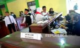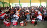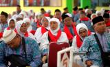 Jamaah calon haji kloter pertama menunggu proses pemeriksaan dokumen di Asrama Haji Donohudan, Boyolali, Jawa Tengah, Selasa (23/5/2023). (FOTO : Republika/Wihdan Hidayat)