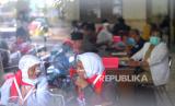 Jamaah calon haji kloter pertama menjalani pemeriksaan kesehatan di Asrama Haji Donohudan, Boyolali, Jawa Tengah, Selasa (23/5/2023). (FOTO : Republika/Wihdan Hidayat)