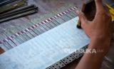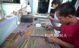 Proses pembuatan gelang identitas untuk jamaah calon haji di Wisma Haji Armina, Boyolali, Jawa Tengah, Selasa (23/5/2023). (FOTO : Republika/Wihdan Hidayat)