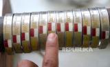 Gelang identitas untuk jamaah calon haji di Wisma Haji Armina, Boyolali, Jawa Tengah, Selasa (23/5/2023). (FOTO : Republika/Wihdan Hidayat)
