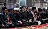 Presiden Iran Ebrahim Raeisi (tengah) bersama Imam Besar Masjid Istiqlal Nasaruddin Umar (kanan) melaksanakan shalat dzuhur di Masjid Istiqlal, Jakarta, Rabu (24/5/2023). (FOTO : Republika/Thoudy Badai)