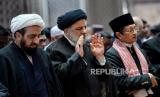 Presiden Iran Ebrahim Raeisi melaksanakan shalat dzuhur berjamaah .