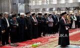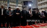 Presiden Iran Ebrahim Raeisi (keempat kiri) bersama Imam Besar Masjid Istiqlal Nasaruddin Umar (kelima kiri) melaksanakan shalat dzuhur di Masjid Istiqlal, Jakarta, Rabu (24/5/2023). (FOTO : Republika/Thoudy Badai)