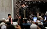 Presiden Iran Ebrahim Raeisi menyampaikan sambutan kepada jamaah saat berkunjungMasjid Istiqlal, Jakarta, Rabu (24/5/2023). (FOTO : Republika/Thoudy Badai)