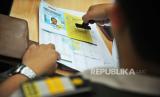 Petugas menandai cap kartu kesehatan jamaah calon haji (Calhaj) Kloter 3 saat pengesahan kesehatan di Asrama Haji Embarkasi Jakarta-Bekasi, Bekasi, Jawa Barat, Rabu (24/5/2023).  (FOTO : Tahta Aidilla/Republika)