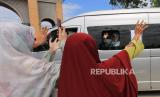 REPUBLIKA.CO.ID, MEULABOH -- Ratusan keluarga jamaah calon haji asal Aceh Barat mengantar keluarganya menjelang diberangkatkan ke Asrama Haji Banda Aceh saat di Masjid Agung Baitul Makmur, Meulaboh, Aceh Barat, Aceh, Rabu (24/5/2023).