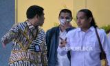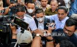 Mantan Komisaris Independen Wijaya Karya (Wika) Beton, Dadan Tri Yudianto (tengah) usai menjalani pemeriksaan sebagai tersangka di Gedung Merah Putih KPK, Jakarta, Rabu (24/5/2023). KPK memutuskan tidak menahan Dadan meski telah ditetapkan sebagai tersangka dalam kasus dugaan suap pengurusan perkara di MA. Dadan ditetapkan sebagai tersangka oleh KPK dalam kasus dugaan suap pengurusan perkara di lingkungan MA dan dilakukan pencegahan untuk tidak melakukan berpergian ke luar negeri selama 6 bulan mulai dari 12 Januari hingga 12 Juli 2023. (FOTO : Republika/Thoudy Badai)