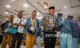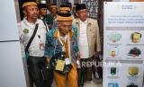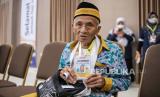 REPUBLIKA.CO.ID,SURABAYA -- Calon jamaah haji Harun bin Senar menunjukkan kartu kesehatan miliknya di Asrama Haji Embarkasi Surabaya (AHES), Surabaya, Jawa Timur, Rabu (24/5/2023).