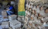 Pekerja menyortir telur ayam di salah satu sentra penjualan telur ayam di Jalan Ibrahim Adjie, Batununggal, Kota Bandung, Jawa Barat, Kamis (25/5/2023). (FOTO : ABDAN SYAKURA/REPUBLIKA)