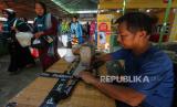 REPUBLIKA.CO.ID, SURABAYA -- Perajin membordir selempang tas milik jamaah calon haji di Asrama Haji Embarkasi Surabaya, Jawa Timur, Kamis (25/5/2023).