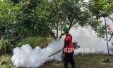 REPUBLIKA.CO.ID,CIAMIS -- Petugas melakukan fogging atau pengasapan di pemukiman yang terkena positif demam berdarah dengue (DBD) di Desa Sukajadi, Kabupaten Ciamis, Jawa Barat, Kamis (25/5/2023).