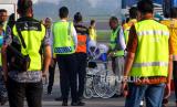 REPUBLIKA.CO.ID,DELI SERDANG -- Petugas membantu calon jamaah haji kelompok terbang (kloter) kedua Embarkasi Medan turun dari bus untuk memasuki pesawat di Bandara Internasional Kualanamu, Kabupaten Deli Serdang, Sumatra Utara, Kamis (25/5/2023).