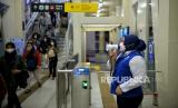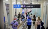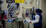 Calon penumpang menempelkan kartu pembayaran bus di Halte Transjakarta Dukuh Atas 2 di Jakarta, Kamis (25/5/2023). PT Transportasi Jakarta kembali mengoperasikan halte Dukuh Atas 2 setelah sempat ditutup pada 4 Desember 2019 imbas dari pembangunan Stasiun LRT Jabodebek. Setelah direvitalisasi, kini halte Transjakarta Dukuh Atas 2 dilengkapi fasilitas seperti musola, toilet umum dan difabel, serta akses JPO menuju halte Transjakarta Dukuh atas 1. (FOTO : Republika/Thoudy Badai)