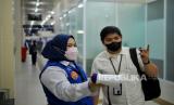 Petugas mengarahkan rute perjalanan bus kepada calon penumpanb di Halte Transjakarta Dukuh Atas 2 di Jakarta, Kamis (25/5/2023). PT Transportasi Jakarta kembali mengoperasikan halte Dukuh Atas 2 setelah sempat ditutup pada 4 Desember 2019 imbas dari pembangunan Stasiun LRT Jabodebek. Setelah direvitalisasi, kini halte Transjakarta Dukuh Atas 2 dilengkapi fasilitas seperti musola, toilet umum dan difabel, serta akses JPO menuju halte Transjakarta Dukuh atas 1. (FOTO : Republika/Thoudy Badai)