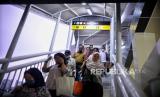 Calon penumpang bergegas menaiki bus Transjakarta di Halte Dukuh Atas 2 di Jakarta, Kamis (25/5/2023). PT Transportasi Jakarta kembali mengoperasikan halte Dukuh Atas 2 setelah sempat ditutup pada 4 Desember 2019 imbas dari pembangunan Stasiun LRT Jabodebek. Setelah direvitalisasi, kini halte Transjakarta Dukuh Atas 2 dilengkapi fasilitas seperti musola, toilet umum dan difabel, serta akses JPO menuju halte Transjakarta Dukuh atas 1. (FOTO : Republika/Thoudy Badai)