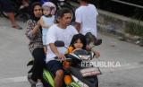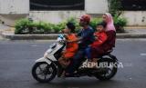 REPUBLIKA.CO.ID,JAKARTA -- Warga berbonceng empat saat mengendarai motor di kawasan Kampung Melayu, Jakarta, Kamis (25/5/2023).