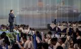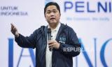 REPUBLIKA.CO.ID,JAKARTA -- Menteri BUMN Erick Thohir menyampaikan kata sambutan pada peluncuran logo dan tagline baru PT PELNI (Persero) di JIExpo, Kemayoran, Jakarta, Kamis (25/5/2023).