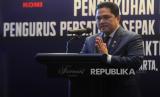 Ketua Umum PSSI Erick Thohir memberikan sambutan saat Pengukuhan dan Pelantikan Pengurus PSSI di Jakarta, Jumat (26/5/2023). KONI resmi melantik dan mengukuhkan 17 pengurus PSSI masa bakti 2023-2027. (FOTO : Republika/Putra M. Akbar)