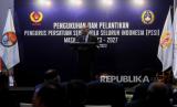 Ketua KOI Raja Sapta Oktohari memberikan sambutan saat Pengukuhan dan Pelantikan Pengurus PSSI di Jakarta, Jumat (26/5/2023). KONI resmi melantik dan mengukuhkan 17 pengurus PSSI masa bakti 2023-2027. (FOTO : Republika/Putra M. Akbar)