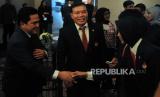 Ketua Umum PSSI Erick Thohir (kiri) saat menghadiri Pengukuhan dan Pelantikan Pengurus PSSI di Jakarta, Jumat (26/5/2023). KONI resmi melantik dan mengukuhkan 17 pengurus PSSI masa bakti 2023-2027. (FOTO : Republika/Putra M. Akbar)