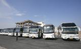 REPUBLIKA.CO.ID,INDRAMAYU -- Petugas berdiri di depan armada bus yang akan digunakan untuk mengangkut calon jamaah haji di Embarkasi Kertajati, Indramayu, Jawa Barat, Jumat (26/5/2023).