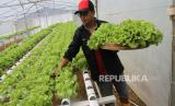 REPUBLIKA.CO.ID,JOMBANG -- Petani memanen selada (Lactuca sativa) di Green House Hidroponik KTH Desa Wonosalam, Kabupaten Jombang, Jawa Timur, Jumat (26/5/2023).