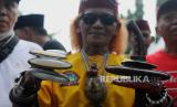 Warga memakai perhiasan batu akik saat menghadiri acara Lebaran Tenabang 2023 di Jalan KH Mas Mansyur, Tanah Abang, Jakarta, Sabtu (27/5/2023). Acara tersebut merupakan ajang silaturahim tahunan warga Tanah Abang dengan menampilkan beragam kebudayaan khas betawi yang berlangsung selama satu hari penuh. (FOTO : Republika/Putra M. Akbar)