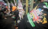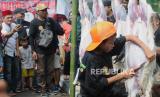 Seorang anak mengikuti lomba menguliti kambing pada acara Lebaran Tenabang 2023 di Jalan KH Mas Mansyur, Tanah Abang, Jakarta, Sabtu (27/5/2023). Acara tersebut merupakan ajang silaturahim tahunan warga Tanah Abang dengan menampilkan beragam kebudayaan khas betawi yang berlangsung selama satu hari penuh. (FOTO : Republika/Putra M. Akbar)
