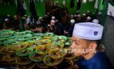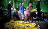 Jamaah menyiapkan hidangan saat acara Haul ke-10 Al Habib Munzir bin Fuad Almusawa di area Makam Al Habib Munzir Almusawa, Rawajati, Pancoran, Jakarta Selatan, Ahad (28/5/2023). (FOTO : Republika/Thoudy Badai)