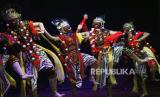 Penampilan tari Topeng Cirebon saat Gelaran Ngibing Pakalangan yang dibawakan oleh puluhan penari tradisional dan para pendekar silat dari sejumlah sanggar dan paguron pencak silat yang di gelar Dinas Parawisata dan Budaya (Disparbud) Jawa Barat (Jabar), melalui Unit Pelaksana Teknis Daerah (UPTD) Pengembangan Kebudayaan Jabar, di Gedung Pengembangan Kebudayaan (GPK), Jalan Naripan, Kota Bandung, Ahad (28/5/2023). Kegiatan tersebut di antaranya bertujuan untuk meningkatkan, melindungi, mengembangkan dan membina kebudayaan Jabar. Selain itu, perhelatan ini juga menjadi upaya untuk mendorong GPK sebagai gedung yang mempunyai daya tarik wisata, dimana penampilan para seniman bisa dinikmati oleh wisatawan lokal hingga mancanegara. (FOTO : Edi Yusuf/Republika)