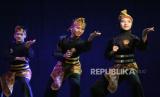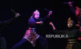 Sejumlah penari menampilkan Tari Tablo saat Gelaran Ngibing Pakalangan yang dibawakan oleh puluhan penari tradisional dan para pendekar silat dari sejumlah sanggar dan paguron pencak silat yang di gelar Dinas Parawisata dan Budaya (Disparbud) Jawa Barat (Jabar), melalui Unit Pelaksana Teknis Daerah (UPTD) Pengembangan Kebudayaan Jabar, di Gedung Pengembangan Kebudayaan (GPK), Jalan Naripan, Kota Bandung, Ahad (28/5/2023). Kegiatan tersebut di antaranya bertujuan untuk meningkatkan, melindungi, mengembangkan dan membina kebudayaan Jabar. Selain itu, perhelatan ini juga menjadi upaya untuk mendorong GPK sebagai gedung yang mempunyai daya tarik wisata, dimana penampilan para seniman bisa dinikmati oleh wisatawan lokal hingga mancanegara. (FOTO : Edi Yusuf/Republika)