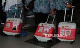 REPUBLIKA.CO.ID,TERNATE -- Sejumlah jamaah calon haji kloter 10 Embarkasi Makassar membawa koper miliknya menuju ruang tunggu keberangkatan di Bandara Sultan Babullah Ternate, Kota Ternate, Maluku Utara, Senin (29/5/2023).