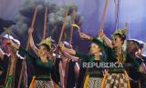 Adegan perjuangan istri Raden Haji (RH) Alit Prawatasari bersama para prajurit melawan penjajah saat drama tari kolosal berjudul Silalatu Gunung Gede karya sutradara Indra Budiaji yang digelar Lingkung Seni Lembang Hiji SMPN 1 Lembang, Kabupaten Bandung Barat, Ahad (28/5/2023). (FOTO : Edi Yusuf/Republika)