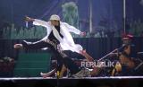 Adegan pertempuran Raden Haji (RH) Alit Prawatasari melawan penjajah saat drama tari kolosal berjudul Silalatu Gunung Gede karya sutradara Indra Budiaji yang digelar Lingkung Seni Lembang Hiji SMPN 1 Lembang, Kabupaten Bandung Barat, Ahad (28/5/2023). (FOTO : Edi Yusuf/Republika)